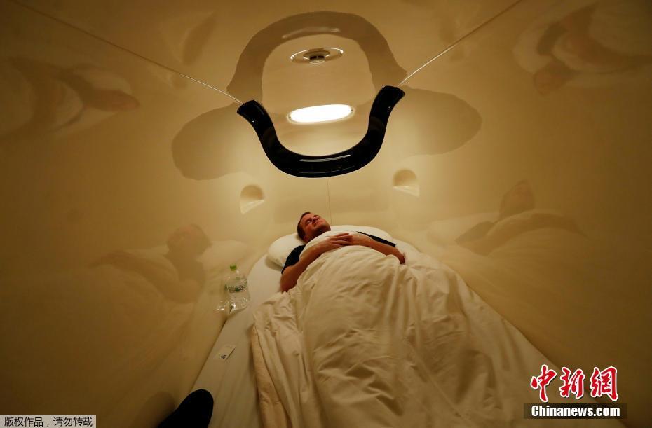 日本东京的胶囊酒店里,一名来自美国的客人躺在他的床上。睡觉不老实的朋友,就不用考虑这样的“局促”体验了。