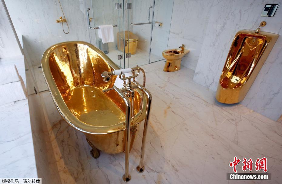 越南一家酒店的总统套房,豪华程度只能用金光闪闪来形容,不仅餐具用黄金打造,连卫生间的马桶浴缸也都贵气逼人。