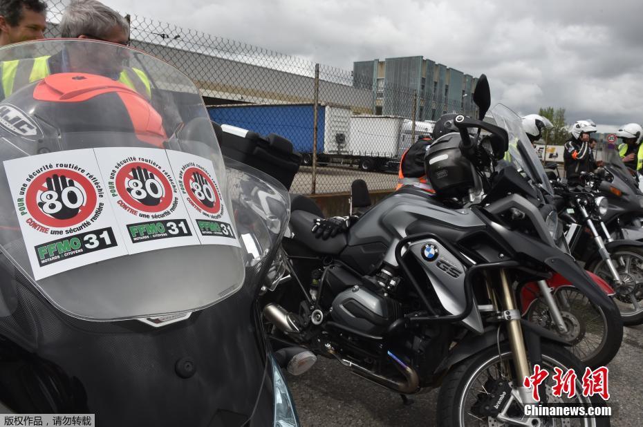 参与游行的摩托车手们在车身上张贴了抗议标语。