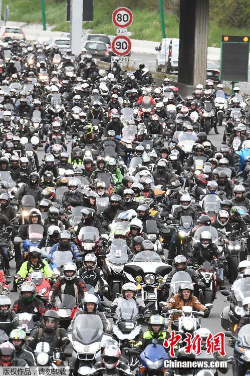数百辆摩托车在图卢兹的街道上行驶,场面壮观。