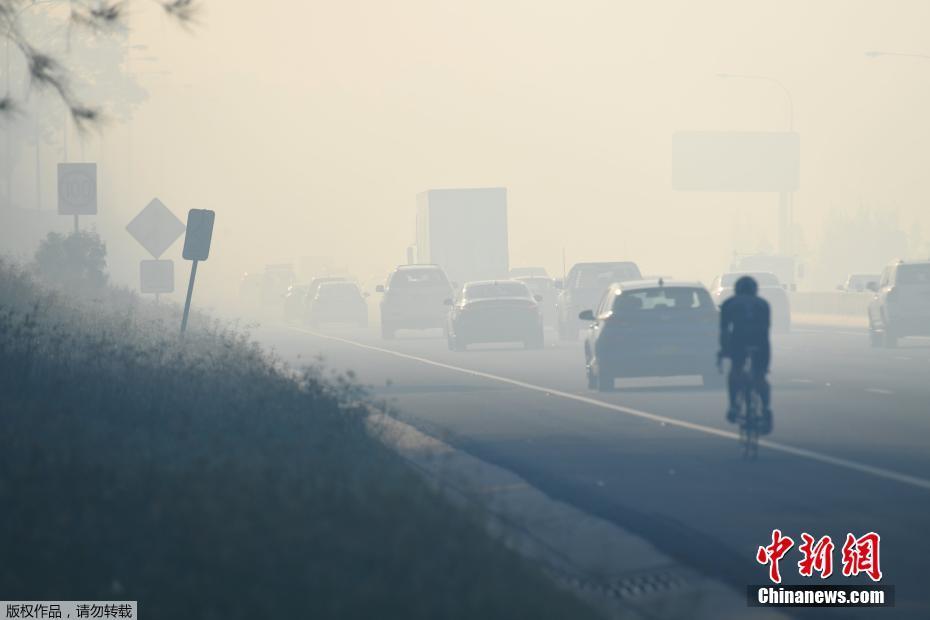 山火造成悉尼M5公路上浓烟弥漫,截至目前,悉尼山火仍处高级别预警。