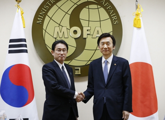 2015年12月28日,韩国前外长尹炳世和日本前外相岸田文雄围绕“慰安妇”问题解决对策进行会谈