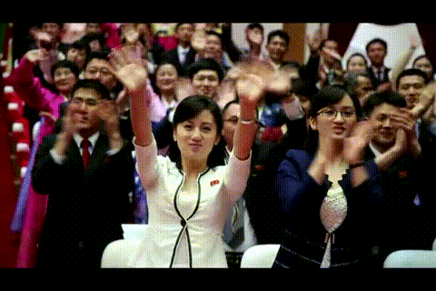 朝鲜观众跳着鼓掌、满脸喜悦