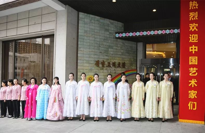 在艺术团下榻的高丽饭店,工作人员早早就做好迎接中国贵宾的准备,一早就在饭店门口和大厅列队欢迎。