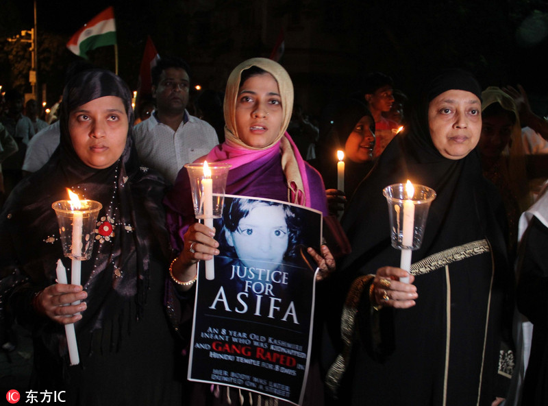当地时间2018年4月15日,印度新德里,强奸案频发,民众参加游行抗议活动。