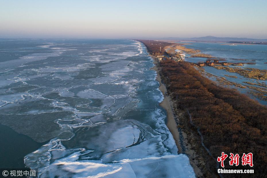 中俄界湖兴凯湖呈现“半湖冰山半湖流水”景观