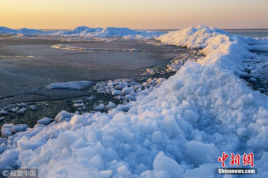 中俄界湖兴凯湖呈现“半湖冰山半湖流水”景观