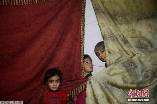 2011年3月至今,战火已延烧七年之久,被炮弹锁定的目标不仅仅只有首都大马士革,留守在叙利亚各地的居民都在躲避战火中学着适应并顽强生存。 图为2018年3月11日,叙利亚大马士革东南部郊区小镇杜马,镇上的孩子们在房梁变形的避难所中生活。