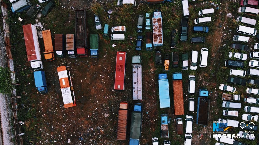 这里是广州的一个废弃车辆停放场,这里有许多“服役”多年已经“退休”的老车,也有很多违规的残车。它们很可能是儿时那辆搭乘过的木头座椅公交车,可能是在小学门口卖臭豆腐的三轮车,也可能是曾经每天五块钱把上班快要迟到的你载到地铁站的那辆摩托车,这里还有面目全非的烂铁,更有被车主当成创意画布的违规改装跑车......航拍摄影师用无人机记录下广州这片“废墟”,他说,这里的车或许有事故,但一定有故事。新华网发 叶冠锐摄