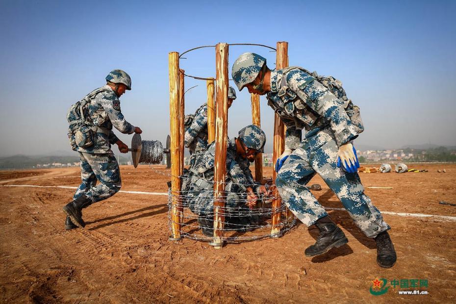 筑城班进行铁丝网制作。图文/刘治鑫 毛铭芷 闵宇翔 苏峰 王宇涛 图片来源:中国军网