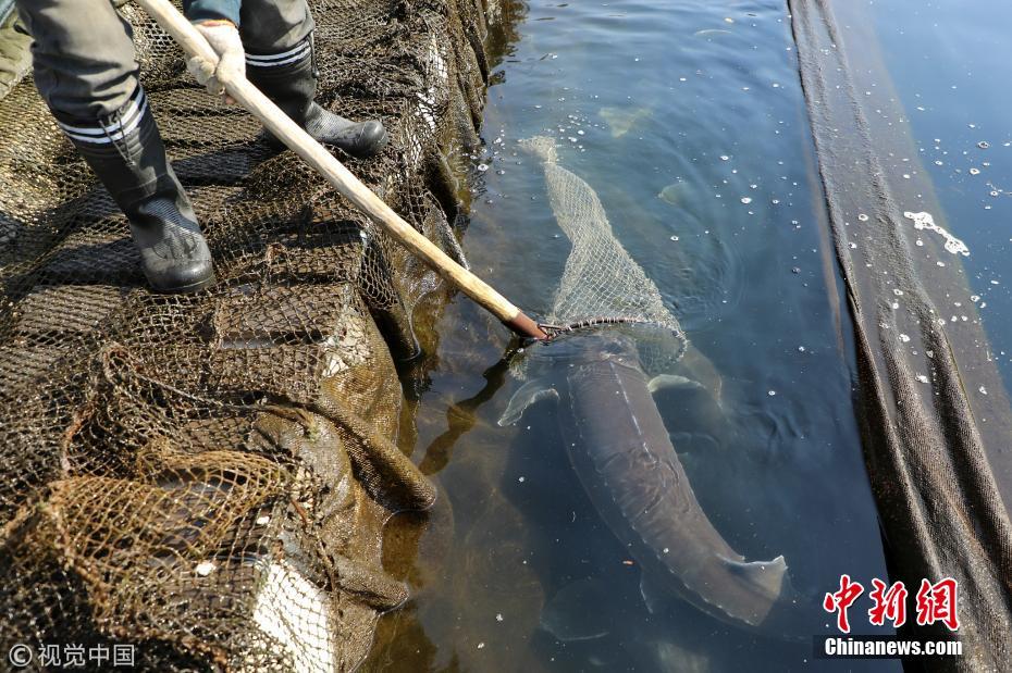 这些黑龙江的养鱼人12年前来到宽甸的河口,在鸭绿江进行鲟鳇鱼和鳇鱼的人工养殖。据负责人李先生介绍,17日当天总共要从网箱中捞出68条雌性鲟鳇鱼,保守估计总价值将超过600万元。68条雌性鲟鳇鱼被装在有供氧设施的运输车上,终点是1600公里外的黑龙江抚远。主要用来做鱼子酱,鱼肉则是附带品。据了解,68条雌性鲟鳇鱼生长期都达到了10年,平均估重为80斤,平均体长约1米70。按产卵率13%到15%计算,每条鱼最后将产生10万元左右的价值。