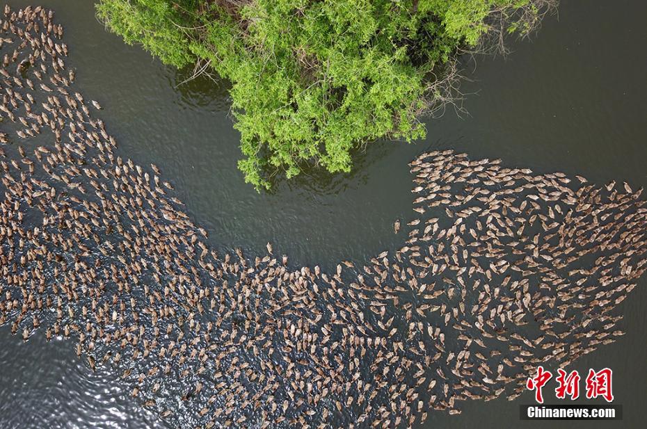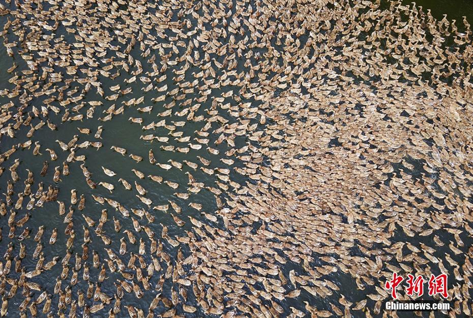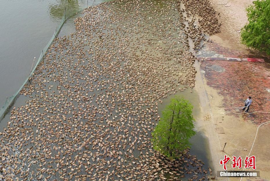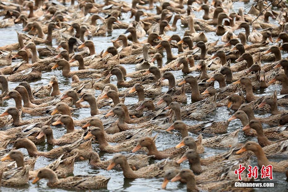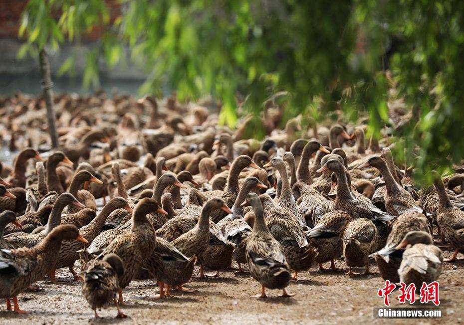 “嘎嘎嘎……”江苏高邮鸭良种繁育中心,波光粼粼的水面上,数千只高邮鸭在水上嬉戏,从空中俯瞰,有“密集恐惧症”之感。4月16日,记者走进江苏高邮,据当地的工作人员介绍,这里是高邮鸭的种源保护基地,目的是为了保证高邮鸭的遗传资源不流失、不退化,这里一共保护了2万多只纯种的高邮鸭,基地同时向市场提供良种鸭苗,一年可提供鸭苗300多万只。“未识高邮人,先知高邮蛋”。咸鸭蛋在全国许多地方都有生产,但以江苏省高邮市的咸鸭蛋,尤以双黄鸭蛋(高邮麻鸭产出的有双黄三黄四黄以及更多)最为著名。其传统制作工艺入选第四批江苏省非物质文化遗产名录。泱波 摄