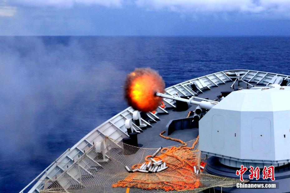 徐州舰主炮对海射击。