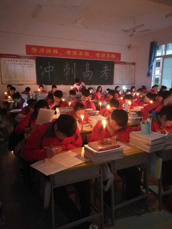 中学突然停电 高三学生点起蜡烛自习