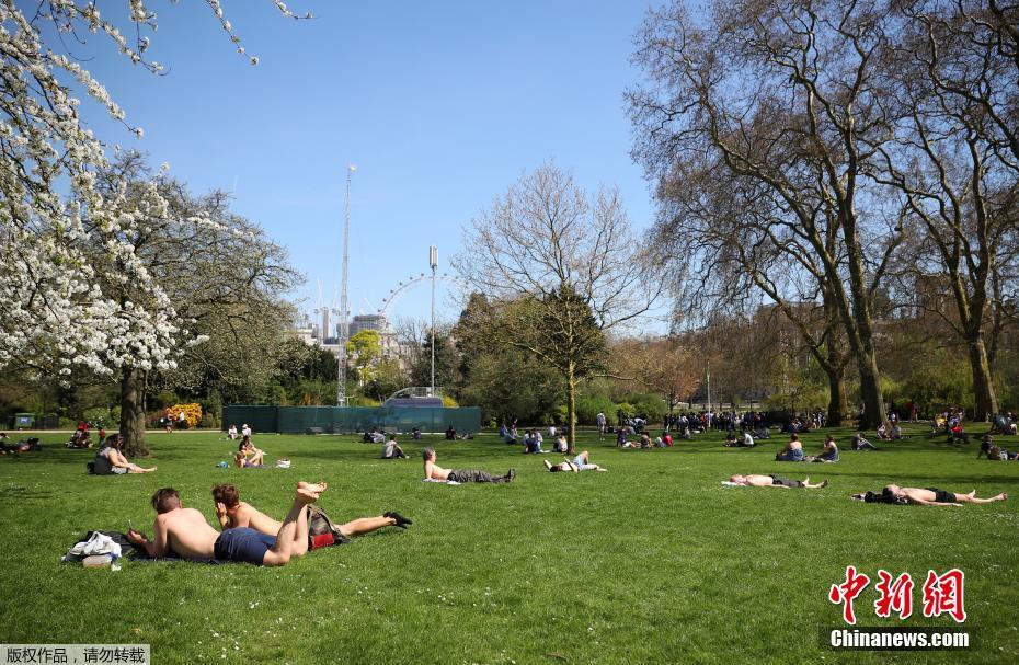 伦敦迎70年来最热四月天 民众纵情享受日光浴