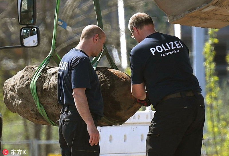 当地时间2018年4月20日,德国柏林,一枚二战未爆弹在柏林中央车站附近被成功拆除。