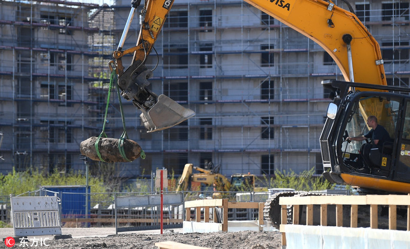 当地时间2018年4月20日,德国柏林,一枚二战未爆弹在柏林中央车站附近被成功拆除。