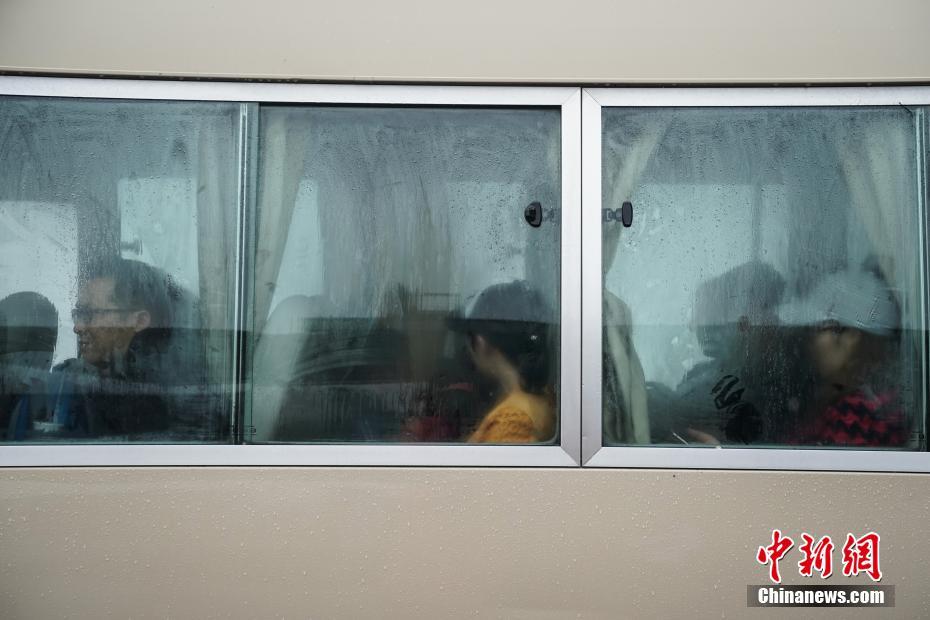 4月21日,一旅游巴士的车窗泛起雾气。当日,北京迎今年以来最强降雨过程,大部分城区出现中到大雨。中新社记者 崔楠 摄