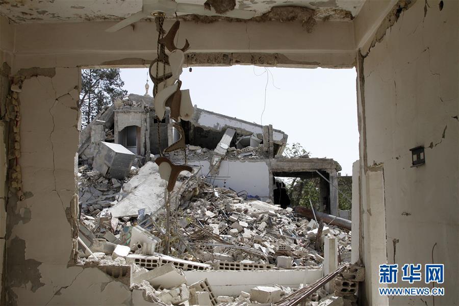 4月20日,在叙利亚大马士革东郊杜马镇,大片建筑在此前的冲突中坍塌。新华社发(胡马姆 阿里摄)