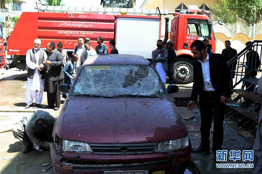 4月22日,在阿富汗首都喀布尔,市民在爆炸现场查看一辆被毁坏的汽车。新华社记者 代贺 摄