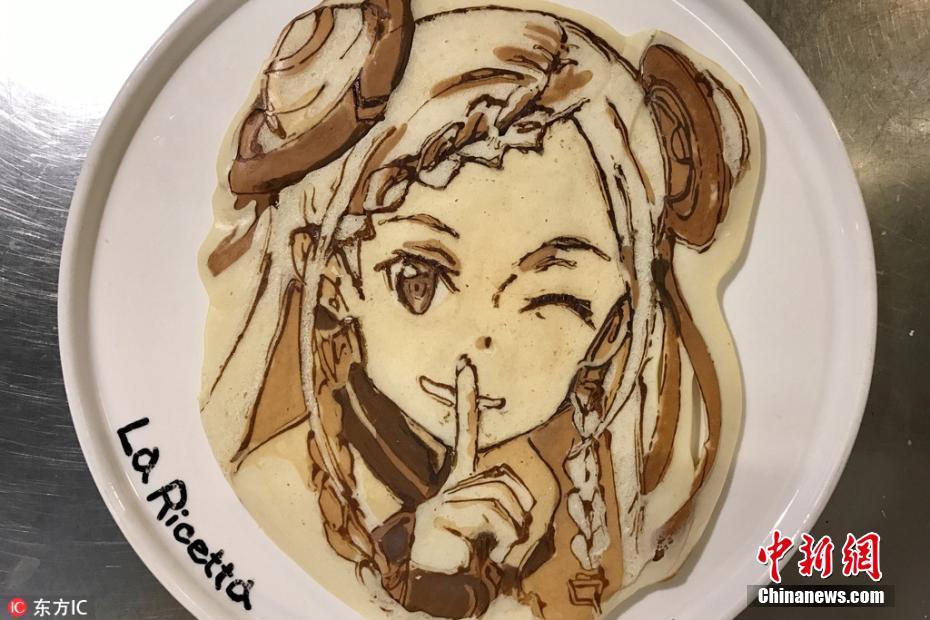 4月23日消息,日本48岁的男子Keisuke Inagaki是一名厨师,更是一名暖心的艺术家,他用煎饼“作画”,绘制出惟妙惟肖的二次元人物,只为鼓励福岛地震灾民,帮助他们走出震后创伤。图为剧场版动画《刀剑神域:序列之争》中的虚拟偶像YUNA。 图片来源:东方IC 版权作品 请勿转载