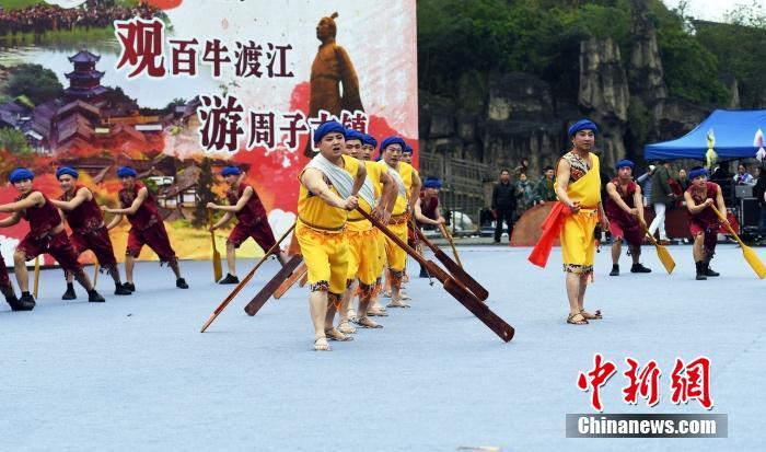 图为往届蓬安嘉陵江放牛节现场精彩表演。 刘永红 摄