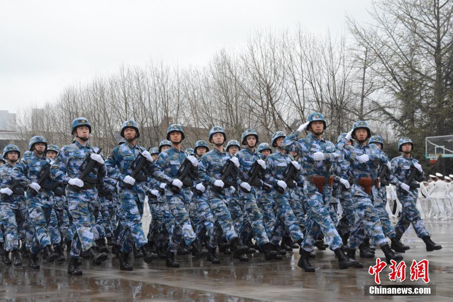 海军大连舰艇学院举行庆祝海军成立69周年阅兵活动