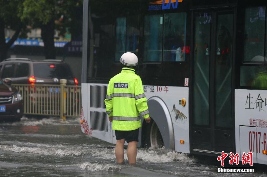 湖北宜昌暴雨致内涝 消防疏散50余人