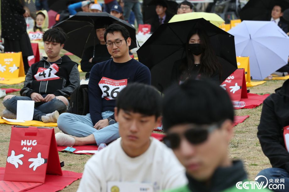 韩国民众雨中参加发呆大赛 静坐放空若时间静止