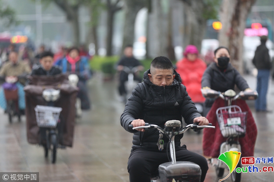 济南秒回冬天 市民穿羽绒服上班