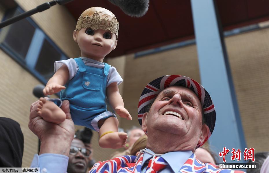 等待在圣玛丽医院林多私人分院门外的民众高举玩偶娃娃,庆祝王妃产子。