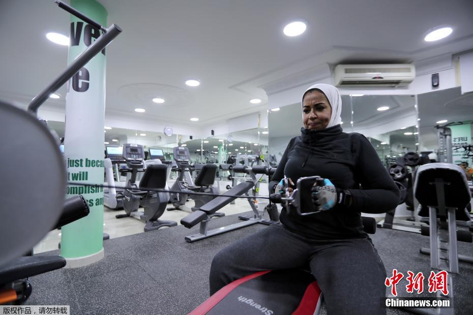 沙特阿拉伯女性健身房锻炼 裹头巾无碍运动