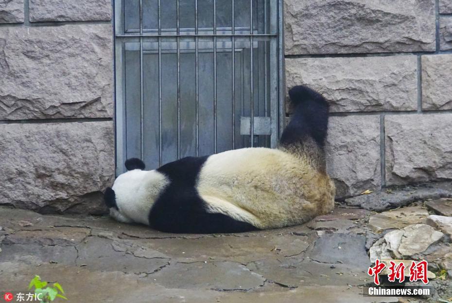 大熊猫“越狱”失败 坐姿慵懒啃竹子