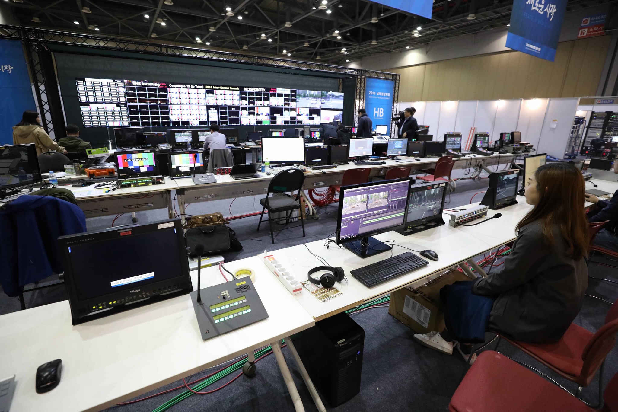 当地时间2018年4月24日,设于韩国国际展览中心(KINTEX)的韩朝首脑会谈主新闻中心准备就绪,等待世界各国的媒体人士的到来。主新闻中心将于26日对外开放。