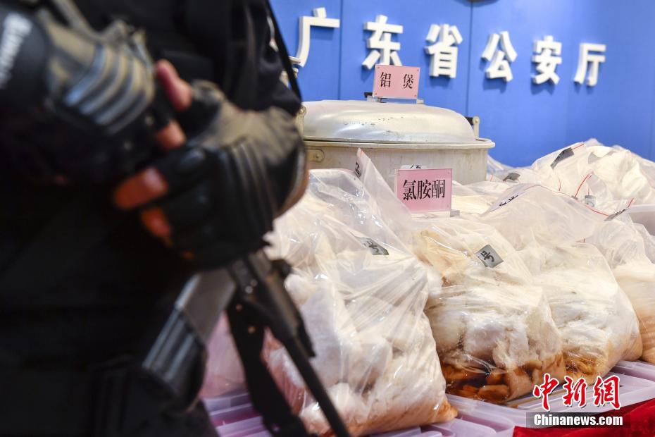 4月24日,广东省公安厅内展示的涉案毒品。当日,广东省公安厅通报称,2018年以来,广东警方侦破毒品刑事案件2790余宗,刑拘犯罪嫌疑人3490余名,缴获毒品4.1吨。中新社记者 陈骥旻 摄