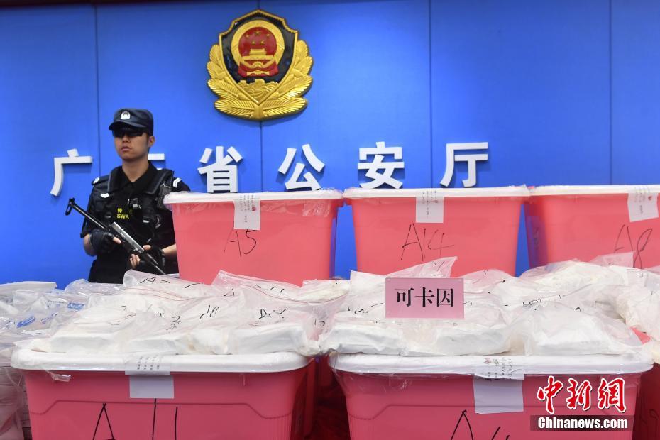 4月24日,广东省公安厅在广州展示涉案可卡因。当日,广东省公安厅通报称,深圳警方联合珠海、广州两地警方日前破获特大跨国贩卖可卡因案,全案缴获可卡因1331千克,案值10多亿元人民币,可卡因缴获量为新中国成立以来最大。中新社记者 陈骥旻 摄