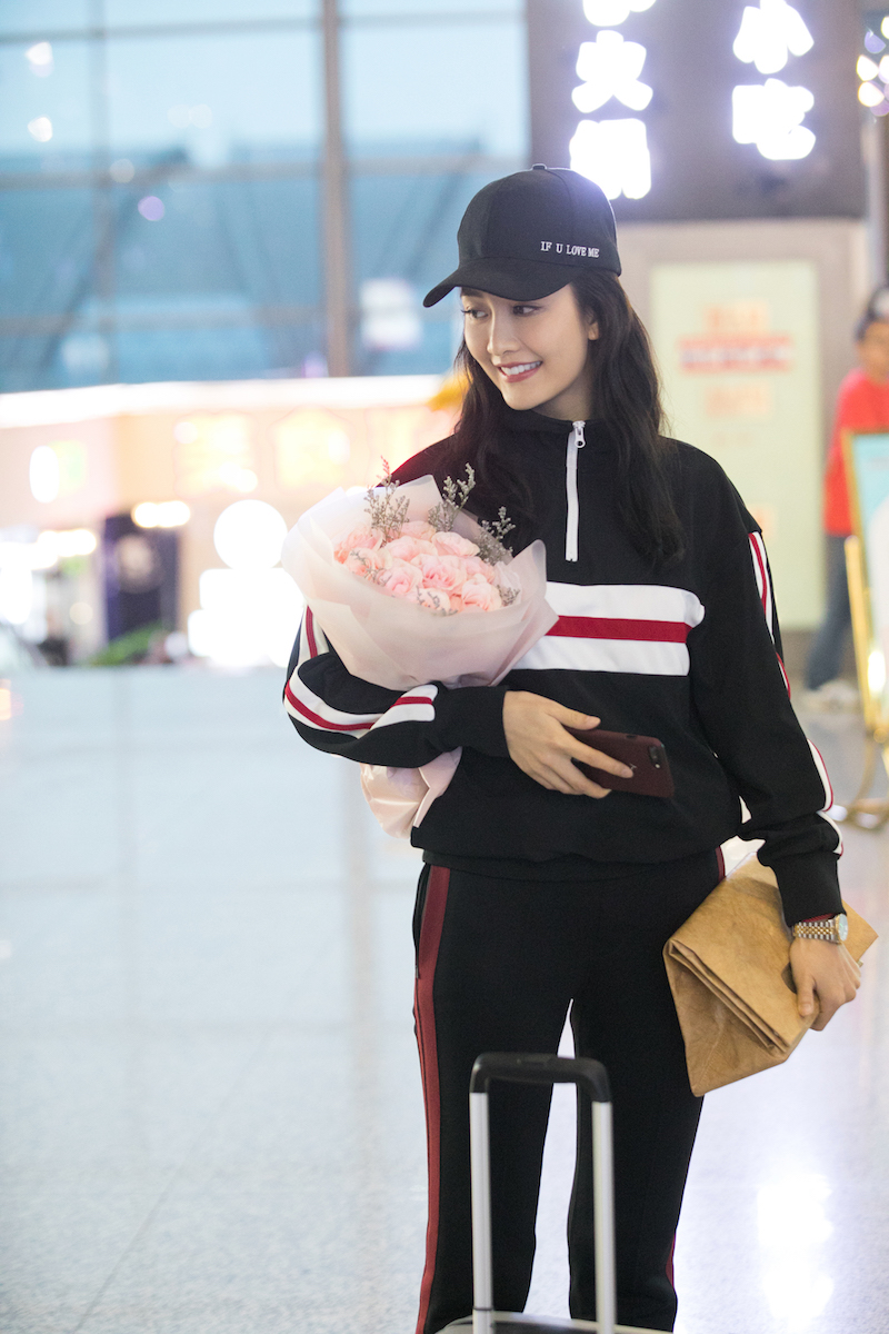 王鸥休闲潮装现身机场 一身黑色混搭品味独特