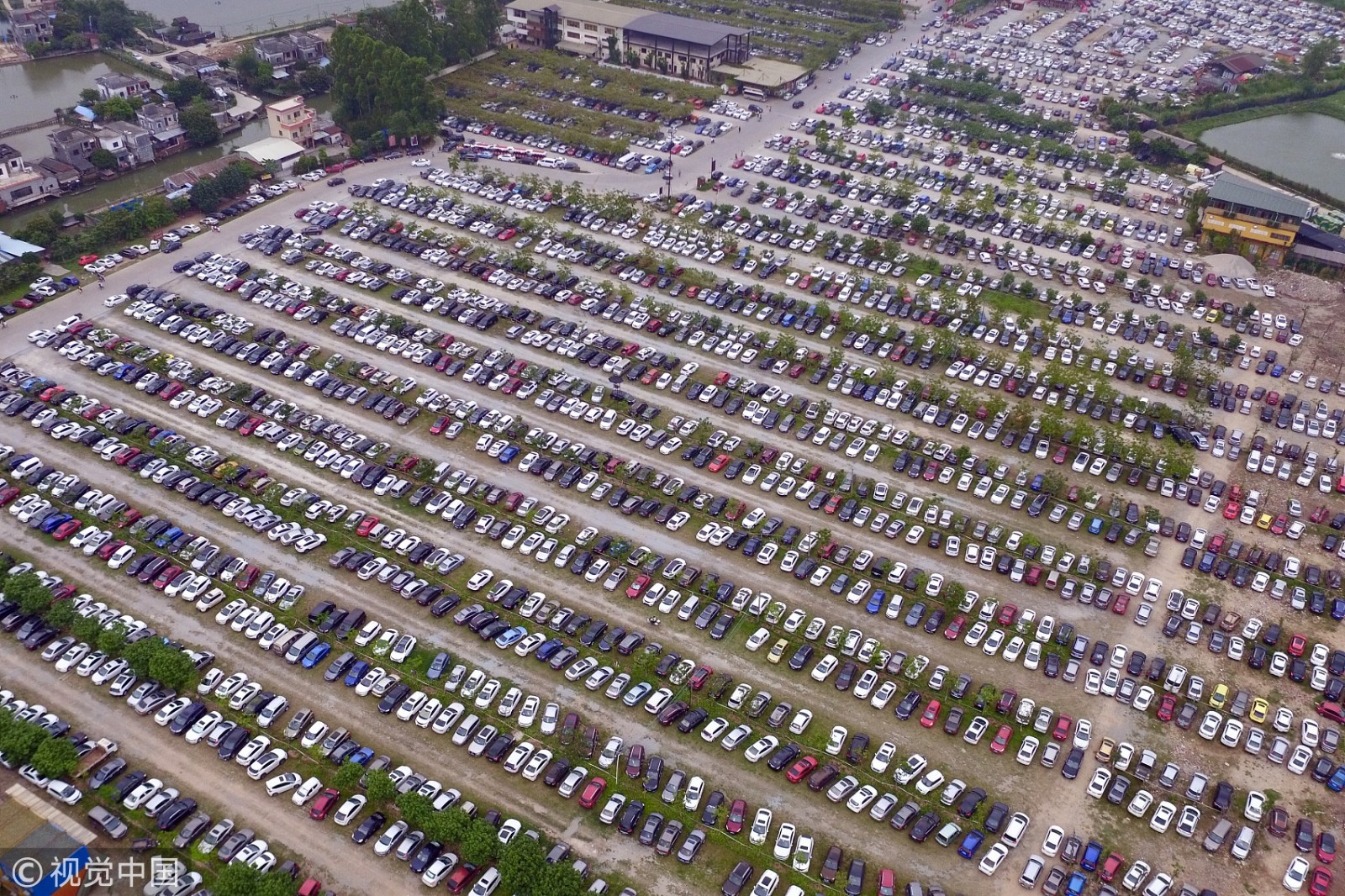 上午9时多,已经出现了旅游高峰,10:30时已经到了最高峰,车龙一直排到高速公路出口。无人机下的停车场,整齐地排放着旅游大巴与小汽车,整个停车场像个汽车玩具城堡,更像电脑软件制作而成的画面。