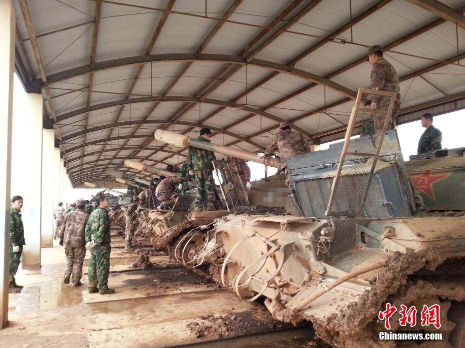 在为期三周的实习中,坦克驾驶是放在第一周的。为了保证安全,学生们需要先在坦克模拟驾驶装置上,练习坦克驾驶技术。动作娴熟后,他们会被拉到离驻地40分钟路程的“红星驾驶场”进行实地驾驶。来实习的66名学生6、7个人一组,陆军装甲兵学院为他们配备了12台坦克,其中有两台作为备用。 北京理工大学供图