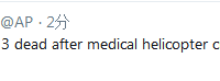 海外网4月27日电 据美联社报道,美国威斯康星州北部一架医疗直升机坠毁,导致3名机组人员死亡。