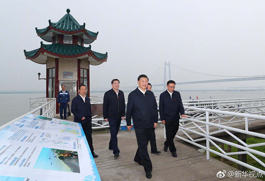 4月25日下午,中共中央总书记、国家主席、中央军委主席习近平考察被誉为洞庭湖及长江流域水情“晴雨表”的城陵矶水文站。 新华社记者谢环驰 摄