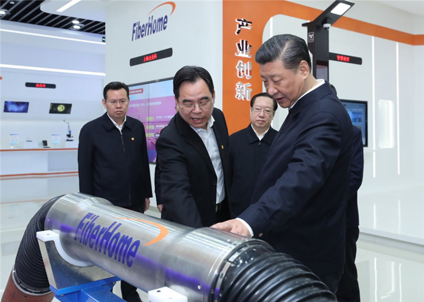 4月26日上午,中共中央总书记、国家主席、中央军委主席习近平在烽火集团有限公司考察。 新华社记者 鞠鹏 摄