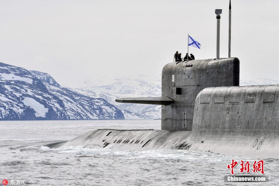 当地时间4月26日,俄罗斯摩尔曼斯克,俄罗斯K-18卡累利阿号核潜艇在北冰洋巴伦支海训练。图片来源:东方IC 版权作品 请勿转载