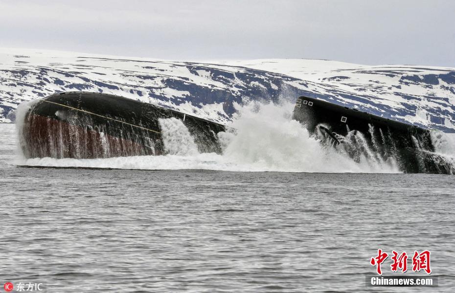 当地时间4月26日,俄罗斯摩尔曼斯克,俄罗斯K-18卡累利阿号核潜艇在北冰洋巴伦支海训练。图片来源:东方IC 版权作品 请勿转载