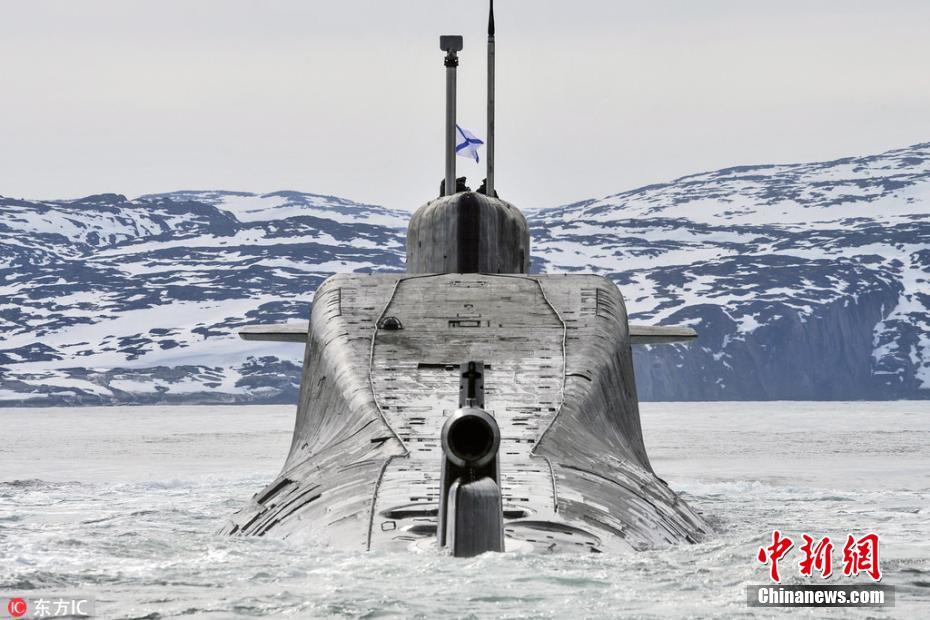 当地时间4月26日,俄罗斯摩尔曼斯克,俄罗斯K-18卡累利阿号核潜艇在北冰洋巴伦支海训练。图片来源:东方IC 版权作品 请勿转载