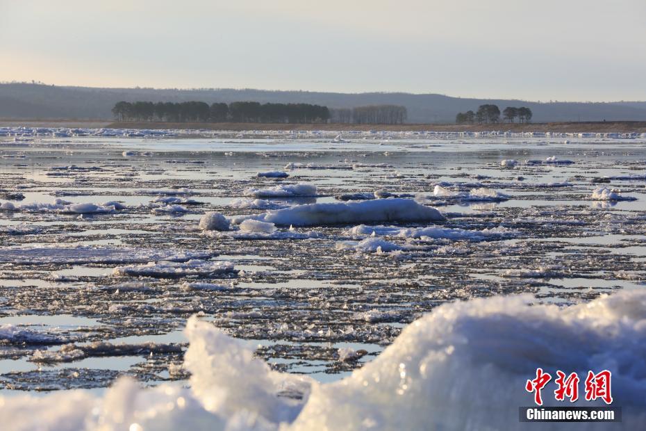 近日,伴随气温快速回升,黑龙江呼玛县江段进入流冰期,壮观的跑冰排盛景吸引了游客前来观赏。中新社记者 于琨 摄