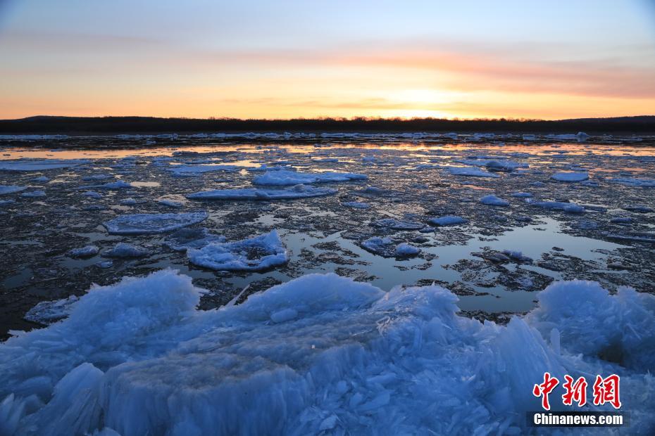 近日,伴随气温快速回升,黑龙江呼玛县江段进入流冰期,壮观的跑冰排盛景吸引了游客前来观赏。中新社记者 于琨 摄