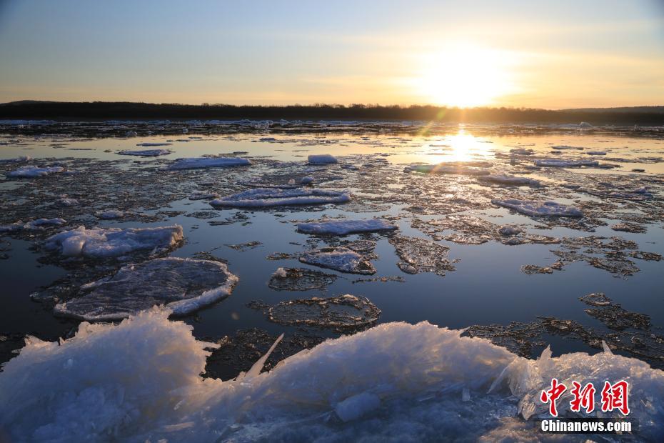 近日,伴随气温快速回升,黑龙江呼玛县江段进入流冰期,壮观的跑冰排盛景吸引了游客前来观赏。中新社记者 于琨 摄