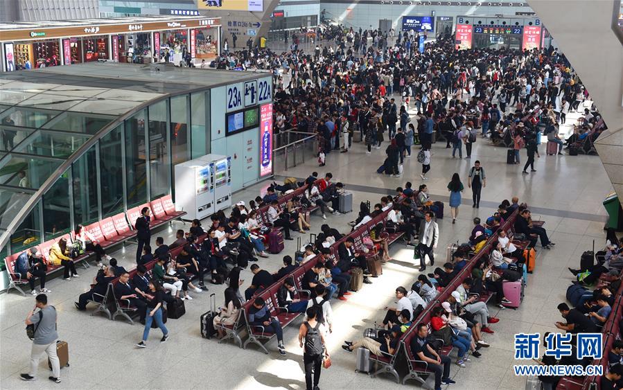 4月28日,旅客在河北石家庄火车站候车大厅里候车。随着五一假期的到来,铁路迎来出行客流高峰。 新华社发(章朔 摄)