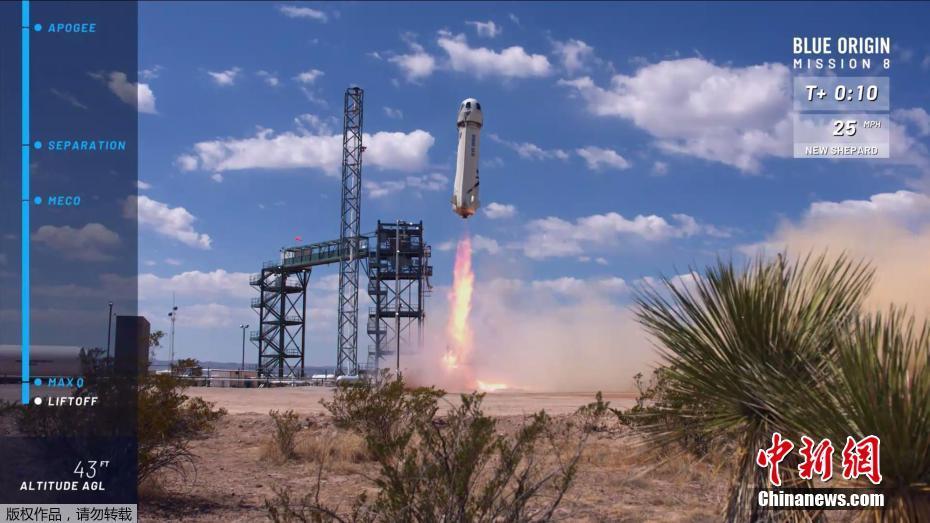 当地时间4月29日,美国得克萨斯州范霍恩附近,美国蓝色起源公司再次成功试飞并回收升级版“新谢泼德”亚轨道飞行器。(视频截图)